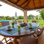 Šarmantna Villa Marija smještena je u malom mjestu Svetvinčenat na jugu istarskog poluotoka, a može se pohvaliti bogatom turističkom i gastronomskom ponudom te brojnim kulturno-povijesnim znamenitostima i lokacijama. Villa Marija okružena je prekrasnim travnjacima i bujnom mediteranskom vegetacijom, dok su brojne prekrasne plaže udaljene samo 20 minuta vožnje. S stambenim prostorom od 290 m2, Villa Marija ima 4 spavaće sobe, od kojih se tri nalaze na prvom katu, svaka sa svojom terasom sa stolom i dvije stolice, dok se posljednja soba nalazi u prizemlju vile i ima direktan pristup bazenu. Tri spavaće sobe opremljene su bračnim krevetima, dok se u jednoj nalaze dva odvojena kreveta koja se po potrebi mogu spojiti. Svaka spavaća soba ima vlastitu kupaonicu s podnim grijanjem i radijatorom. Dodatna kupaonica nalazi se u pomoćnom objektu u blizini saune i bazena. Gostima Ville Marije na raspolaganju su i zaseban WC, potpuno opremljena, moderna kuhinja s blagovaonicom te dnevni boravak opremljen TV-om, PlayStation konzolom i kaminom. Uz tri druge vile, Villa Marija se nalazi na terenu od 25000 m2 gdje je gostima zajamčena privatnost jer su dvorišta odvojena živicama i drvećem kako bi se stvorio intimniji prostor. Sve vile dijele 2 teniska terena, pola košarkaškog terena (1 koš), 2 igrališta i kuglanu. Dvorište vile površine 3000 m2 sadrži bazen (50 m2) s grijanjem i opcijom masaže okružen ležaljkama, kao i vanjski prostor za blagovanje i roštilj.